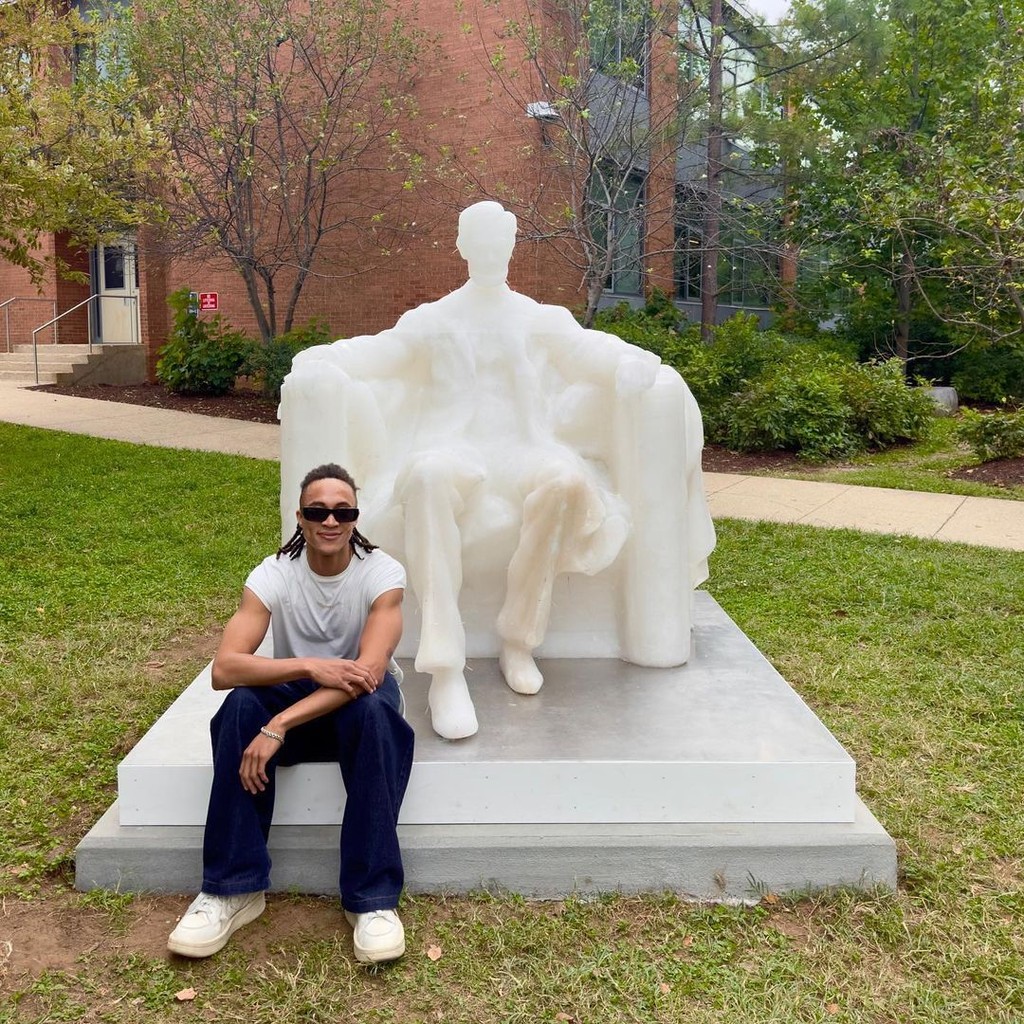 網友與林肯蠟像的合照。圖片來源:網友 sandywilliams_iv