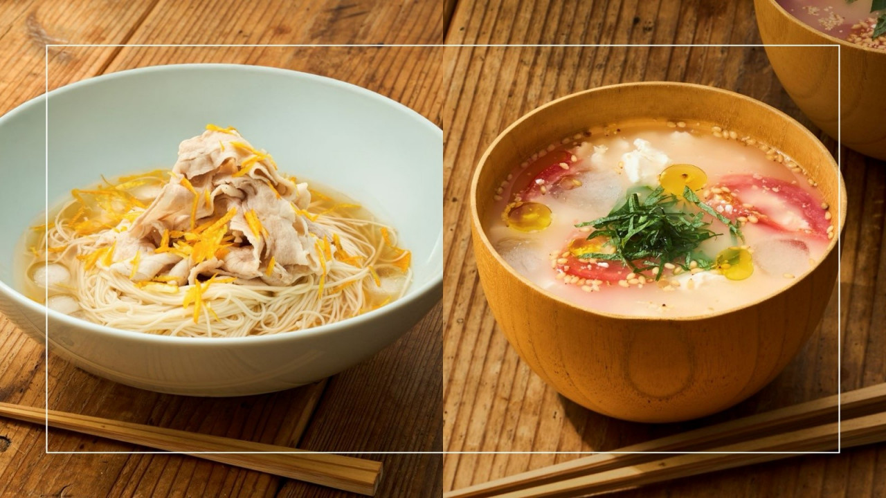 左:添加黃柚的冷麵線,右:蕃茄冷味噌湯。圖片來源:味之素株式会社/PR TIMES
