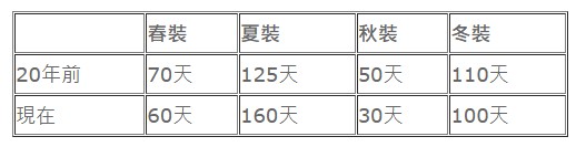 日本服飾業界各季服飾販售天數。製表:張郁婕。資料來源:日本經濟新聞
