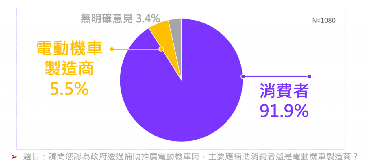 根據 SMAT 調查,高達 91.9% 民眾呼籲政府補助應以「消費者」為主,而非以各類計畫的名目發放給「製造商」,才能更有效刺激市場、提升購車意願。