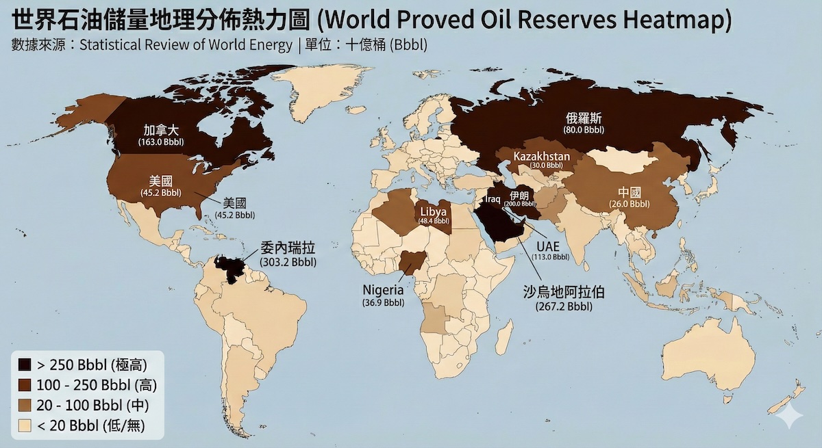 根據倫敦能源協會(Energy Institute)的官方數據,委內瑞拉擁有全球最大的已探明石油儲量,高達 3,030 億桶,約占全球總儲量的 17%,甚至超越石油輸出國組織(OPEC)龍頭沙烏地阿拉伯。