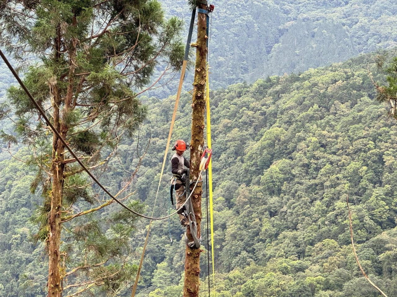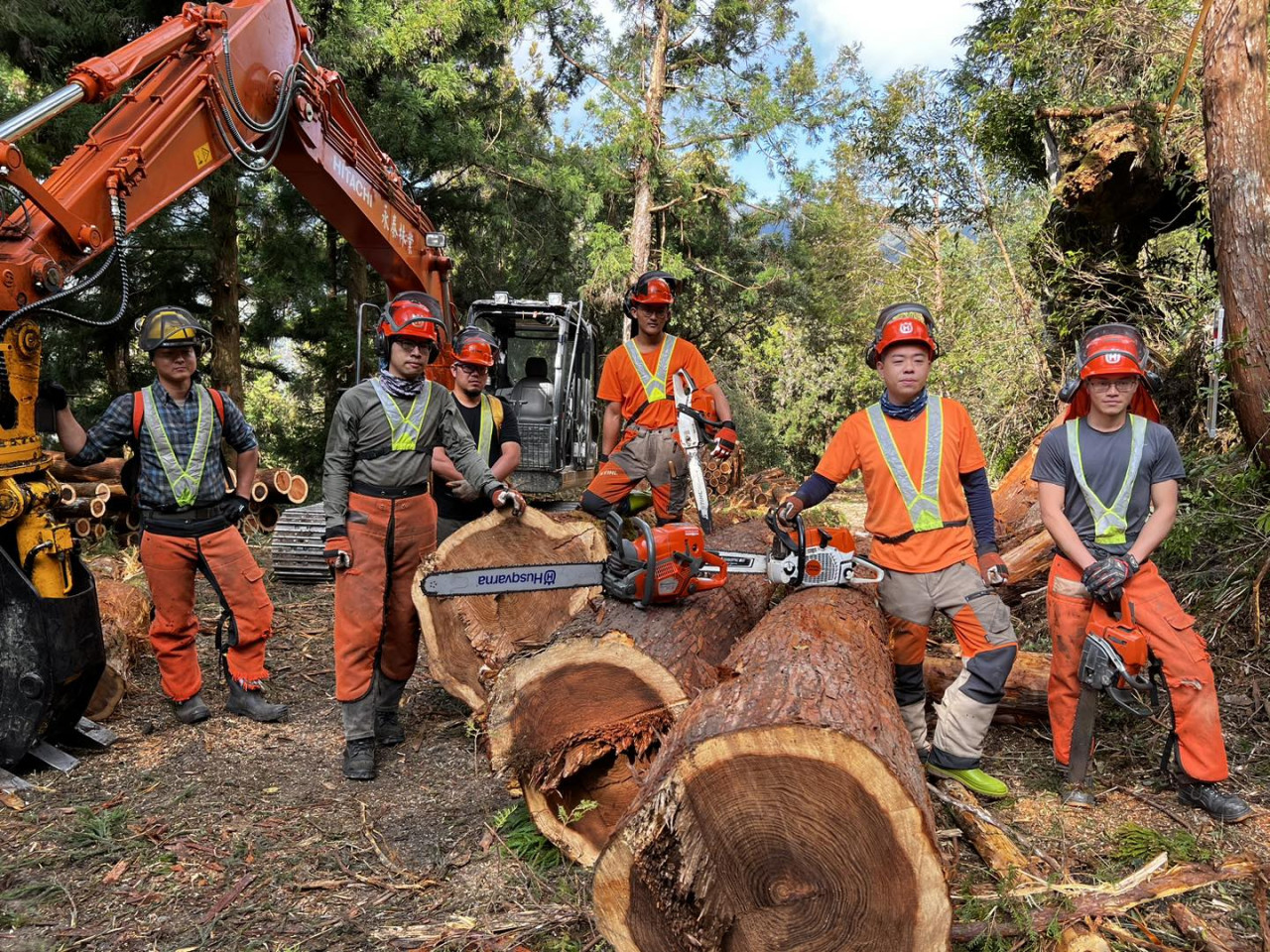 「集材是最耗時費力的環節。」吳沛縉說明,「有時需架設索道系統克服峽谷地形,就像大型吊娃娃機,用鐵盒承載木材跨越困難地形。」而伐木則是最需要經驗的工作,每棵樹的生長地形和內部纖維都不同,需要專業判斷。