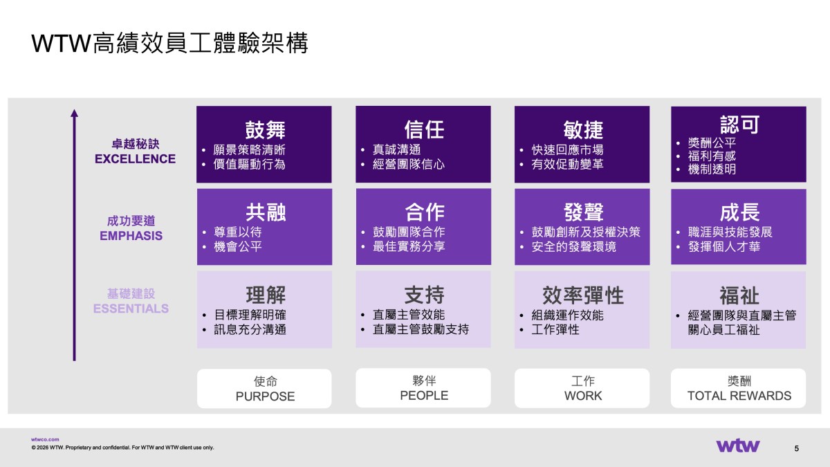 高績效員工體驗架構。圖片來源/韋萊韜悅(WTW)提供