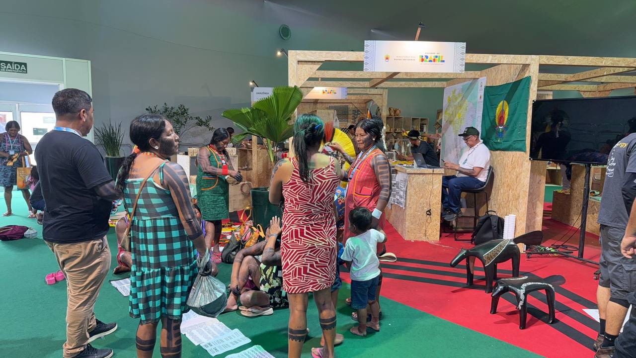 COP30會展現場,當地原住民邀請與會者體驗圖騰文化。圖片來源:王浚儒提供