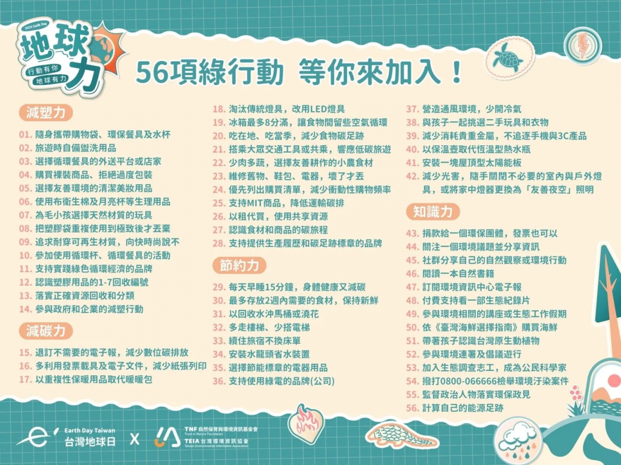 為了響應地球日,台灣也正熱烈推動「百萬綠行動」與「綠色生活21天」,呼籲大家從「減少光害、隨手關燈」等簡單的小習慣開始,把減碳落實到每一天的生活中。