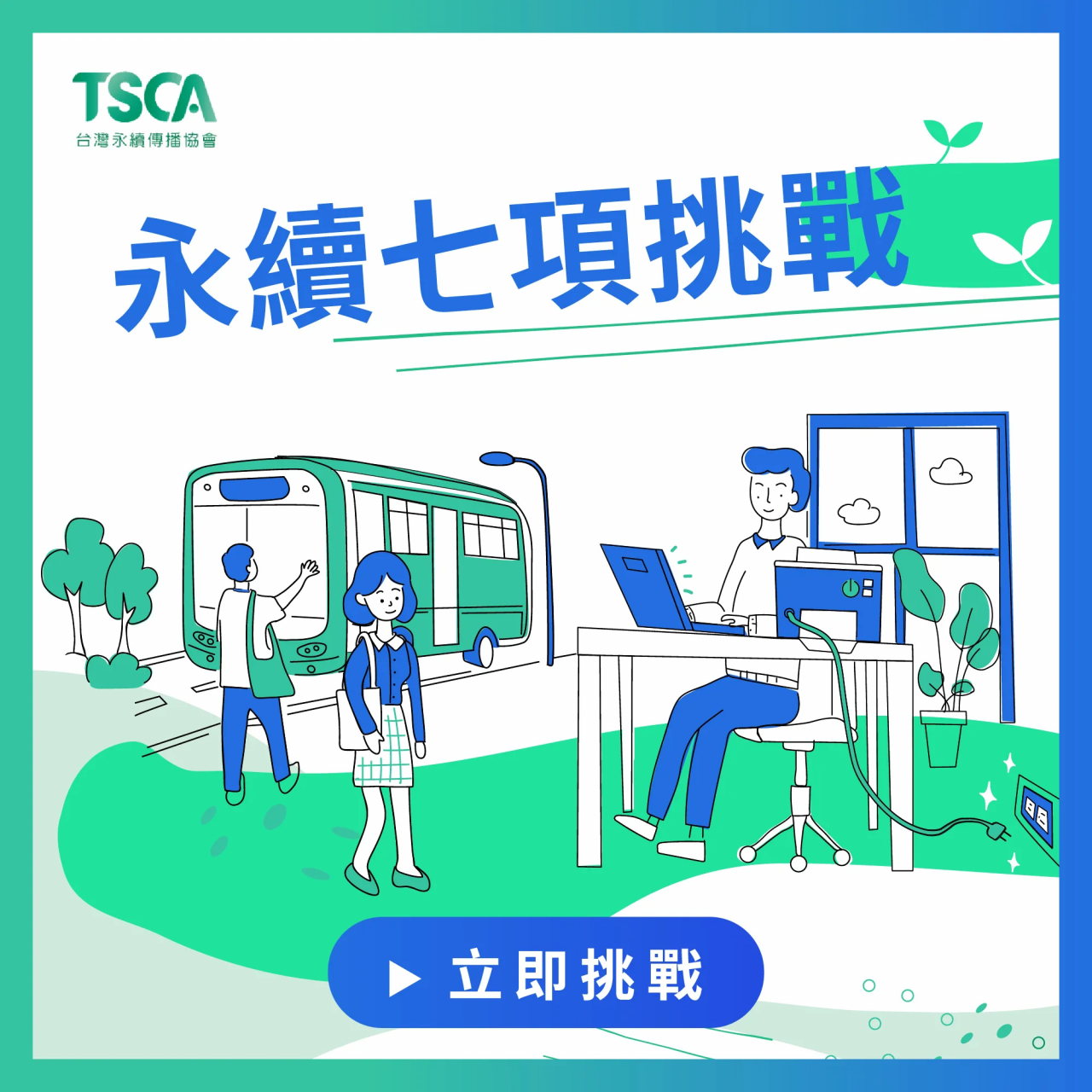 如果你不知道該從何開始,不妨參加由台灣永續傳播協會(TSCA)發起的《永續生活7挑戰》!這項活動不僅能讓你輕鬆實踐綠色生活,還結合了超有意義的公益機制。即日起至2026年5月10日,只要你參與挑戰,協會就幫你捐款!