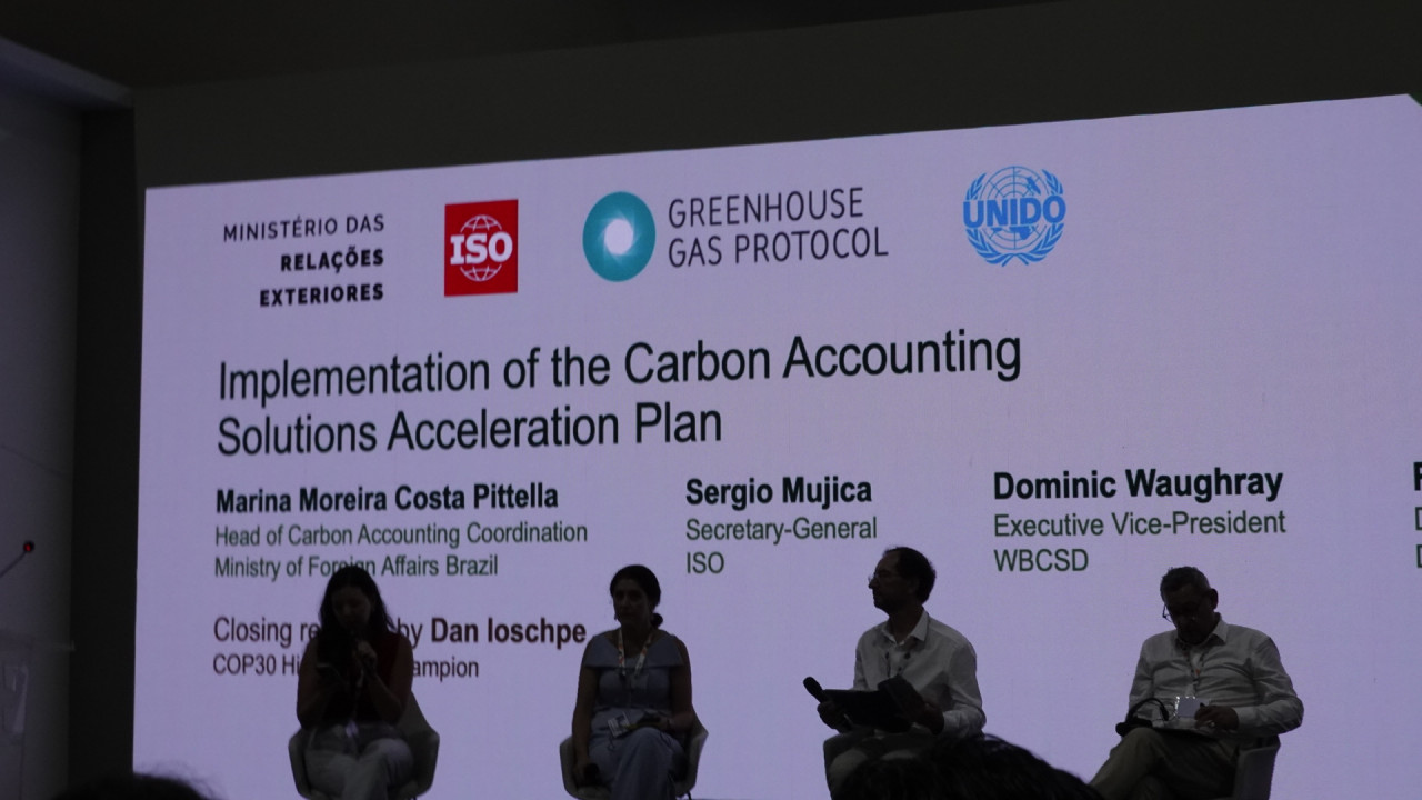 COP30周邊論壇上,國際標準化組織(ISO)和溫室氣體盤查議定書(GHG Protocol)討論企業的碳排規範。圖片來源:陳子萱攝