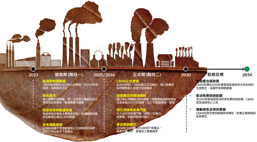 根據目前的法規推展規劃,CBAM 分為兩大階段 :