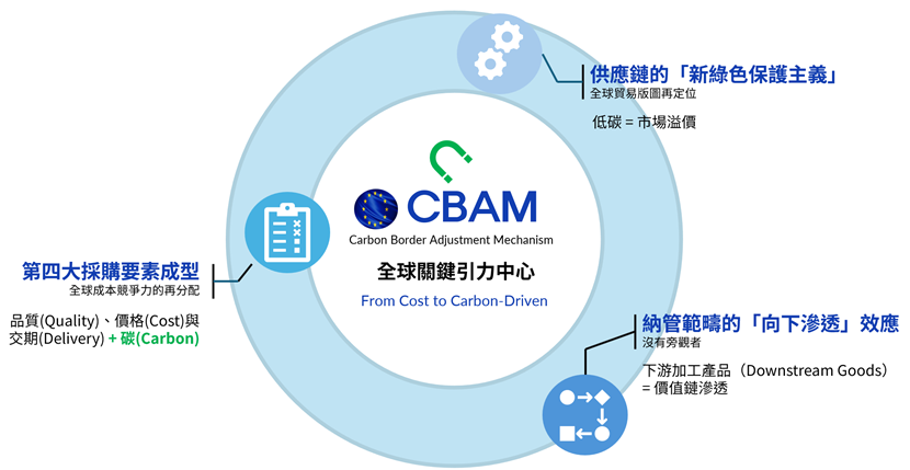 它正迫使全球供應鏈從過去以成本導向」為核心的配置邏輯,快速轉向以「碳強度導向」為主導的新競爭秩序,並引發三項結構性變革: